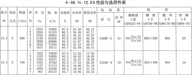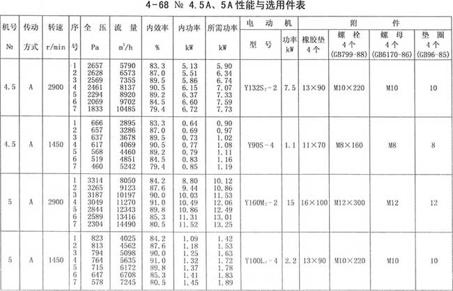 4、周口4-68離心風(fēng)機性能與選用件表